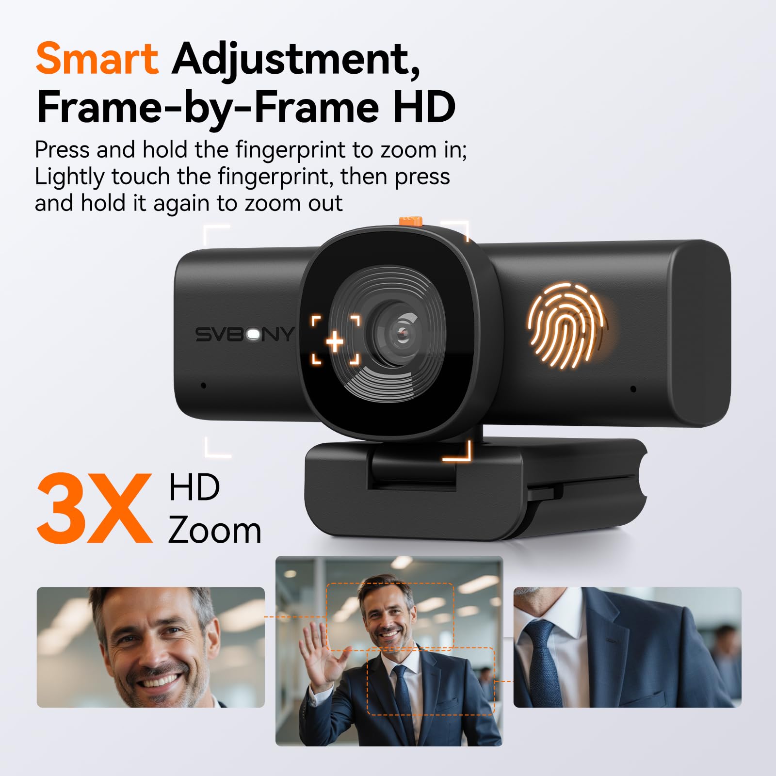 - Touch Control Zoom & Lightning-Fast 0.8s Autofocus; Camera for computer use the intuitive touch-sensitive buttons to zoom in up to 3x digitally; Combined with an ultra-fast 0.8-second autofocus system, it keeps you sharply in focus even when you move