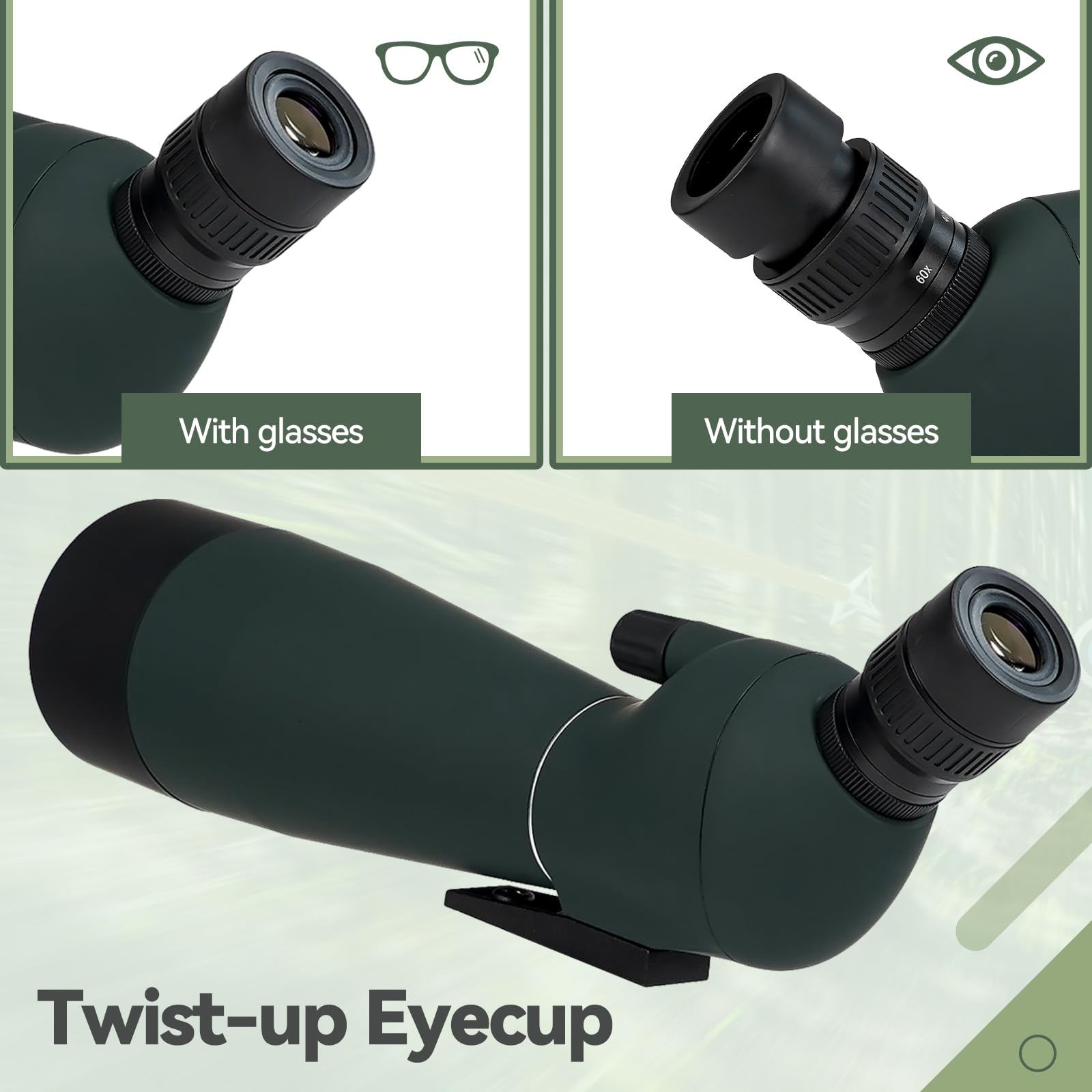 - Twist-up eyecup; SV28PLUS spotting scope is suitable for people with different visions; and myopic users do not need to remove glasses to enjoy easy observations; so whether you wear glasses or not; you can find the comfortable observation position